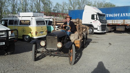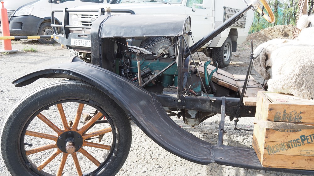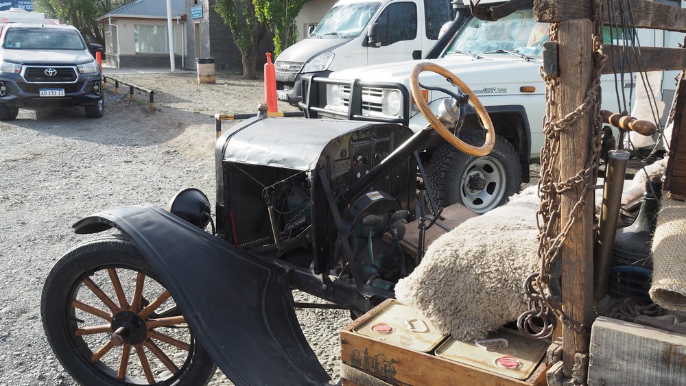 Wegen des Auffahrunfalls sind wir nach Rio Gallegos gefahren. An der Tankstelle begegnete uns dieser Farmer mit seinem Ford aus dem Jahr 1925, der immer noch auf den Strassen in Rio Gallegos fährt. Er erklärte uns, dass das Auto von seinem Grossvater ist, danach hat ihn sein Vater gefahren und jetzt in der dritten Generation fährt er noch mit ihm.