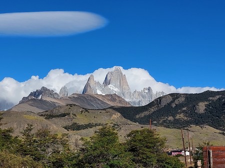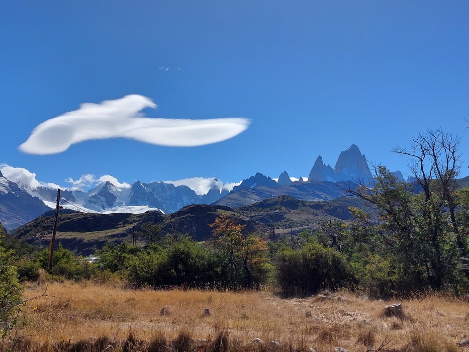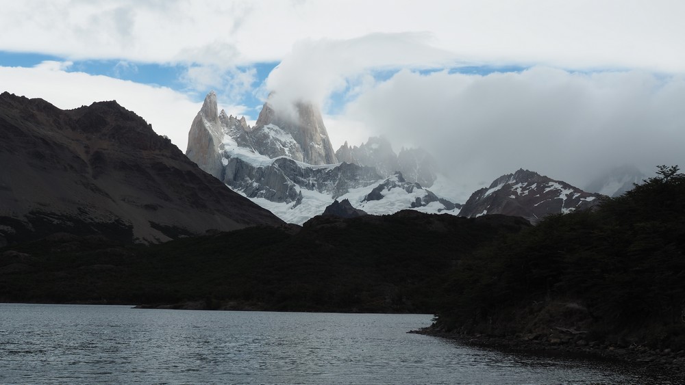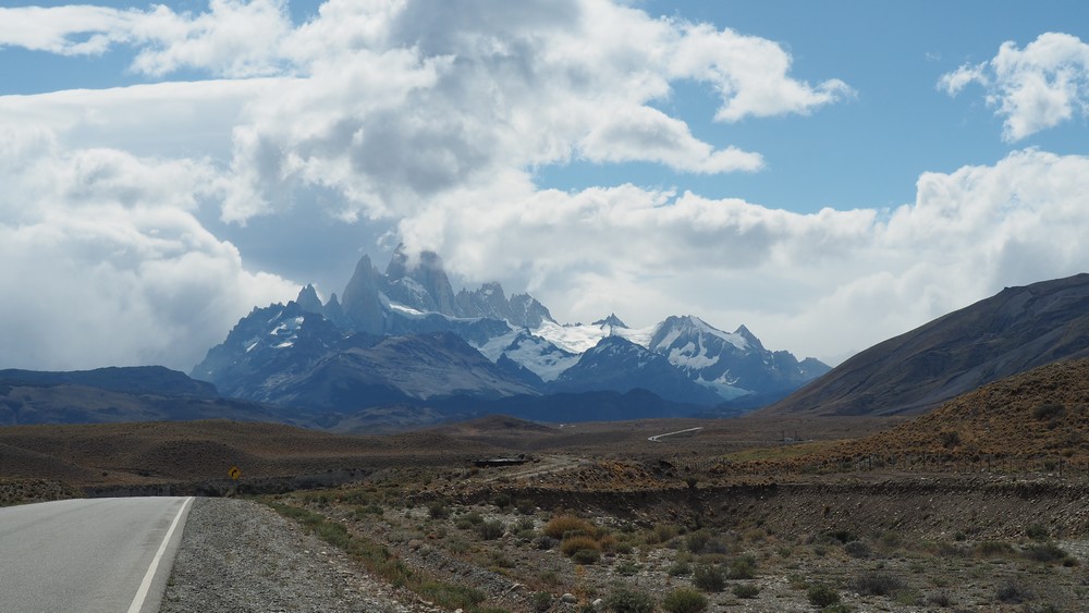 Eingangs El Chalten präsentiert sich das Highlight von der Gegend, das Fitz Roy Massiv. Heute leider etwas in den Wolken.