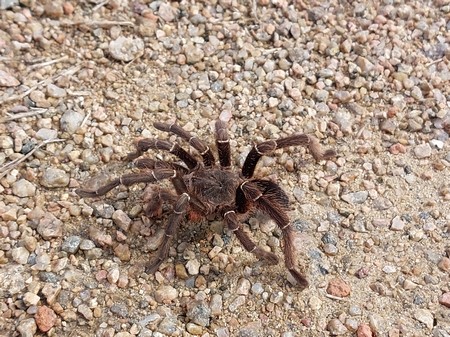 In der Nähe unserer Campsite ist uns diese nicht ganz kleine Vogelspinne über den Weg gelaufen. Vogelspinnen besitzen acht Augen, können aber trotzdem nicht sehr gut sehen.