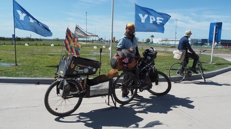 Unmittelbar nach der Grenze in Argentinien haben wir diesen Reisenden aus den USA getroffen. Er ist mit seinem Fahrrad und Anhänger schon seit 10 Jahren unterwegs.