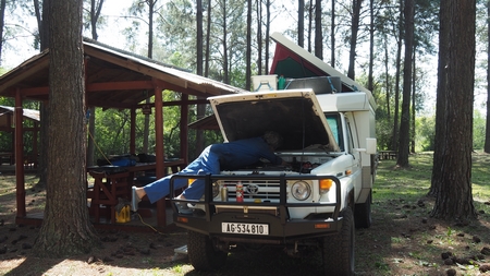 Das Auto lies uns nicht los, schon nach 900 Km musste ein grosser Service erledigt werden. In El Dorado fanden wir eine gute Campsite wo wir den grossen Service erledigen konnten. Leider hatte es an diesem Platz sehr viele Stechmücken und Jejen, das sind ganz kleine ekelhafte Blutsauger die vom Boden her völlig unbemerkt hauptsächlich die Beine befallen. Bis man die Biester bemerkt hat man schon etliche Bisse. Wegen der Blutspende an die Insekten litten wir eine Woche an Juckreiz.
