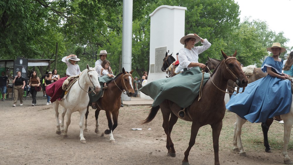 Am Abschlusstag des Festivals reiten die Gauchos in all ihrer Pracht durch die Strassen der Kleinstadt und präsentieren sich mit dem ganzen Clan.