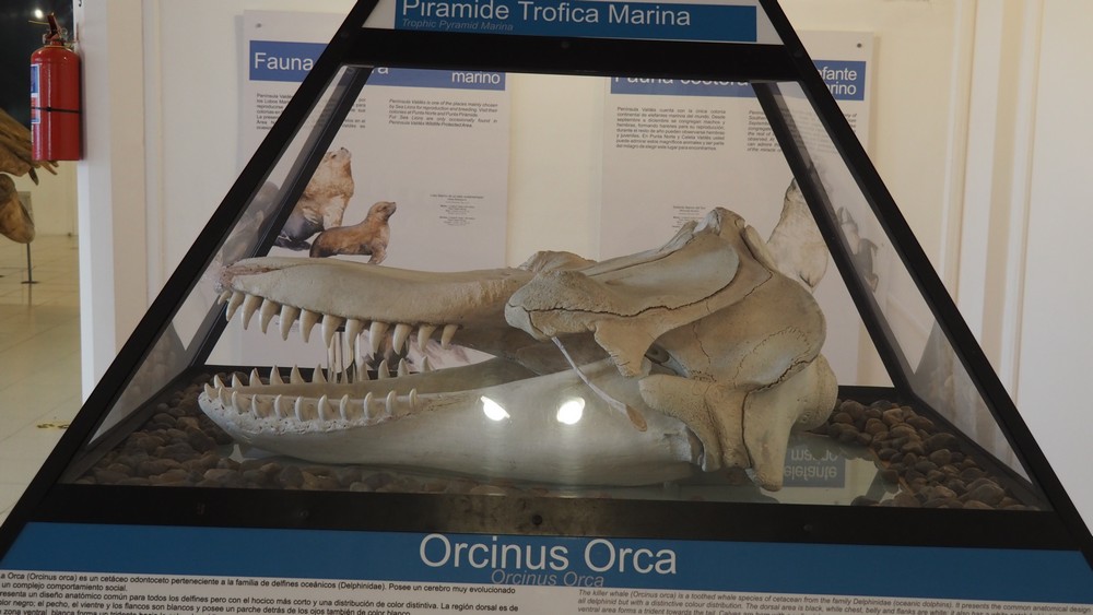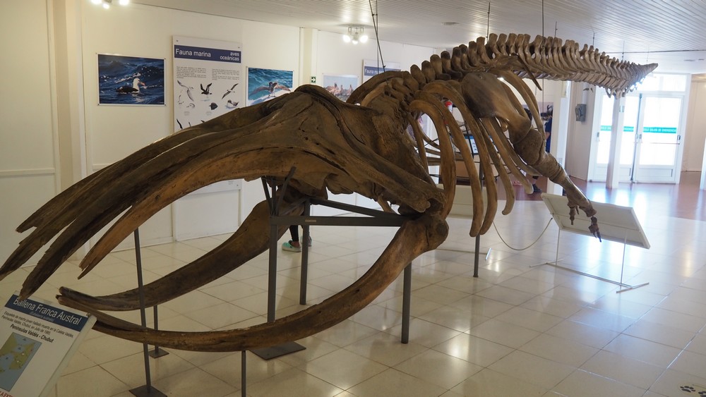 Kurz nach dem Eingang in das Naturreservat Peninsula Valdés gibt es ein kleines Museum in dem ein Walskelett zu betrachten ist.
