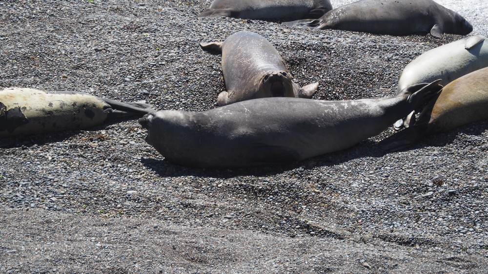 Fast um die gesamte Halbinsel sind riesige vorgelagerte Sandbänke. Das könnte der Grund sein warum sich die See-Elefanten hier wohl fühlen.