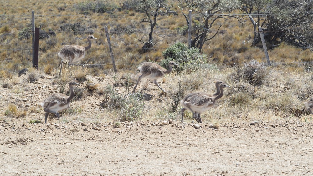 Öfters trifft man die flugunfähigen Choiques am Pistenrand.