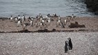 Die Pinguine haben ihr eigenes Revier abseits der See-Elefanten.