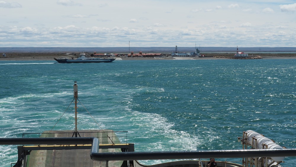 Nachdem wir die Grenze nach Chile passiert haben führt uns der Weg über eine Engstelle der Magellanstrasse die man mit einer Autofähre überquert.