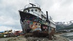 Auf der Südseite, gegenüber der Stadt, liegt dieses bemalte Schiffswrack.