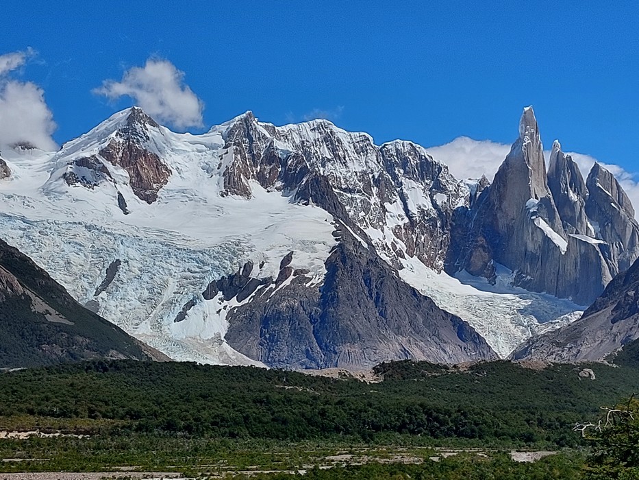 Das Wetter verbesserte sich von Tag zu Tag und wir entschlossen uns ins Tal vom Rio Fitz Roy zu wandern von wo aus man die Cerro Torres gut sehen kann aber das Fitz Roy Massiv im unteren Teil von einem Bergrücken verdeckt ist.