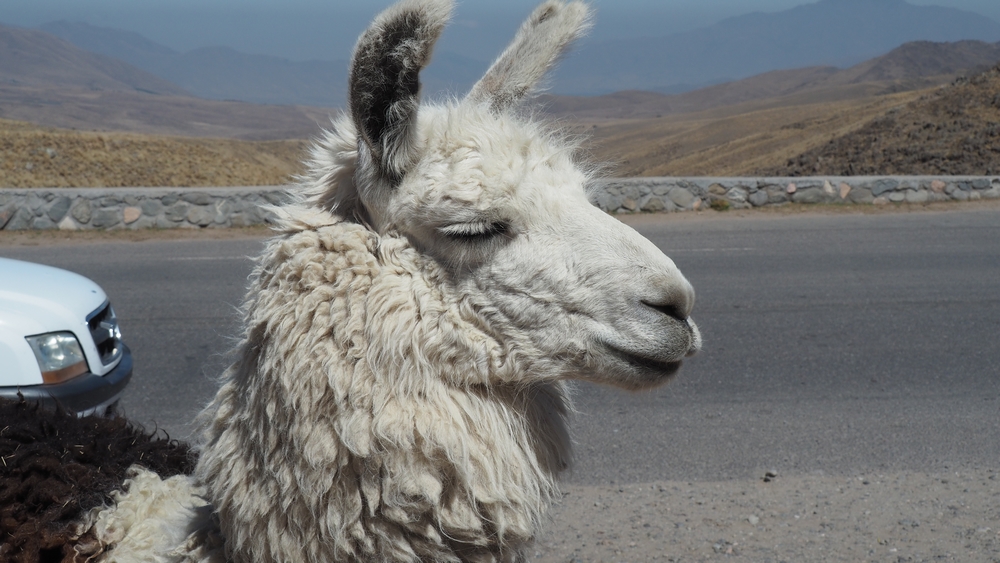 Auf der Passhöhe hatte es mehrere Lamas als Touristenattraktion. Die Tiere zeigten absolut keine Scheu gegenüber den Menschen.