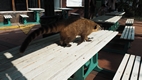 Die Tiere sind schon ganz schön frech und versuchen irgendetwas menschliche Nahrung zu ergattern. Sie scheuen sich auch nicht einfach auf die Tische zu gehen.