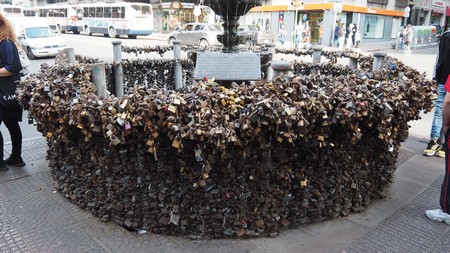 Wie wir auch schon in Europa an Brückengeländern gesehen haben, gibt es diese Tradition auch hier an einem Brunnen mit vielen unzähligen Malschlössern.