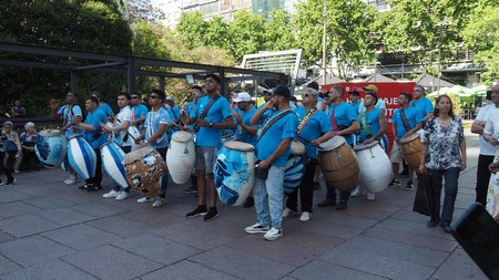 Die Männer machten mit ihren Trommeln die Musik und gaben den Takt an. Die vielen Trommeln erzeugten einen starken akustischen Sound.