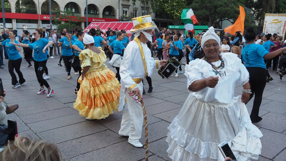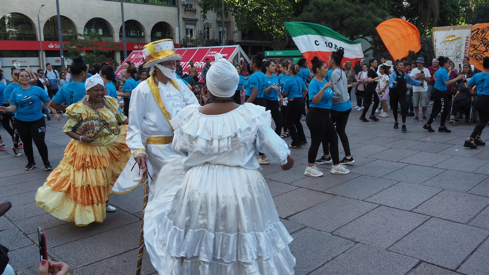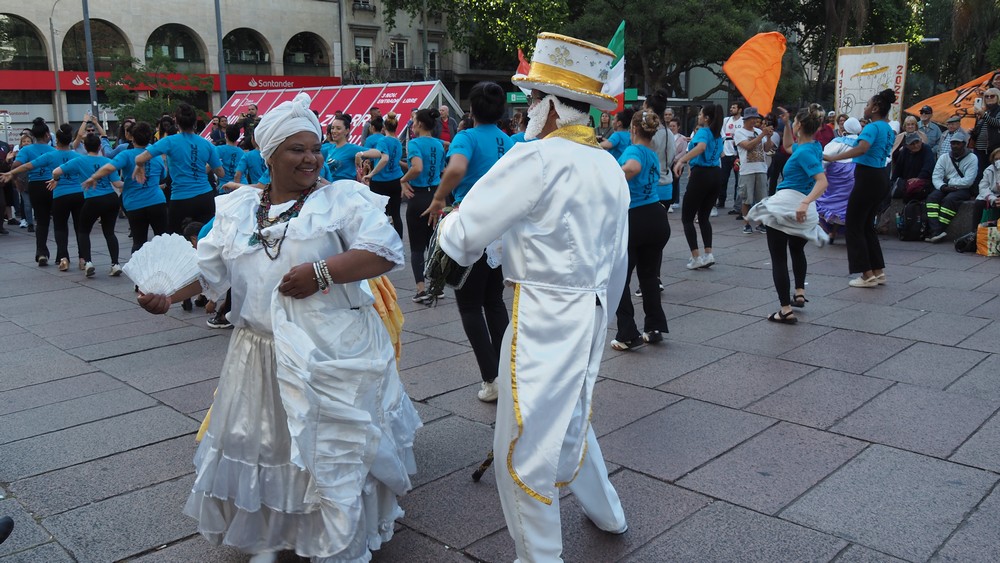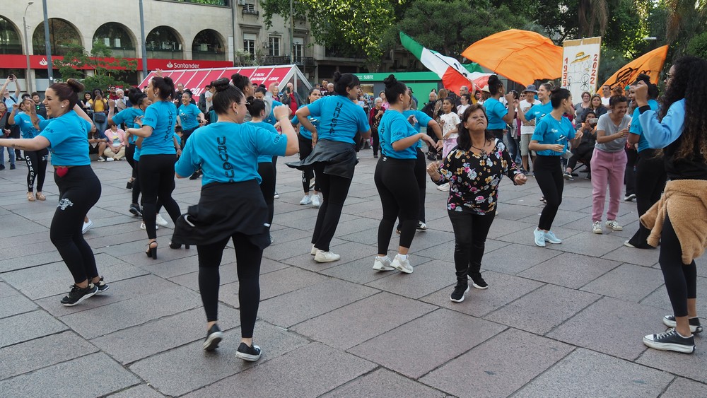 Die Frauen tanzten und schwangen ihre Hüften nach südamerikanischer Manier, sogar Passantinnen wurden animiert und tanzten mit.